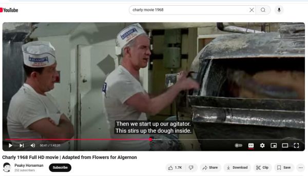 If the tone of my writing impresses my readers as melancholic, I can tell them there is a reason for that. The movie CHARLY concerns a retarded man who undergoes brain surgery to improve brain function. Before the surgery, he worked in a bakery as a janitor. In spite of his disability, he works diligently and sincerely. In his core-self, he glows with a gentle good-nature, accepts being the butt of his co-workers jokes with good humor, and shrugs off their occasional cruelty to him.