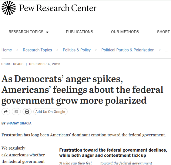 Americans from both political parties feel like minorities in someone else's country. They complain all the time about how much the government and the opposing party hates everything they stand for. From the serene disinterest of the stratosphere, it must sound like baby crows complaining about the feeding schedule. Nothing expresses helplessness like endless complaining.