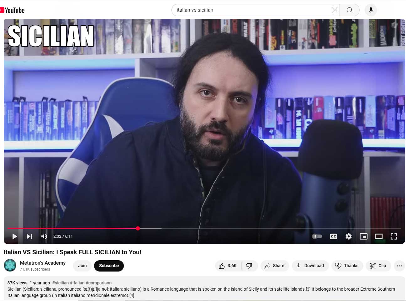 From there, I went to a video that offered up samples of Sicilian—completely different from Italian.