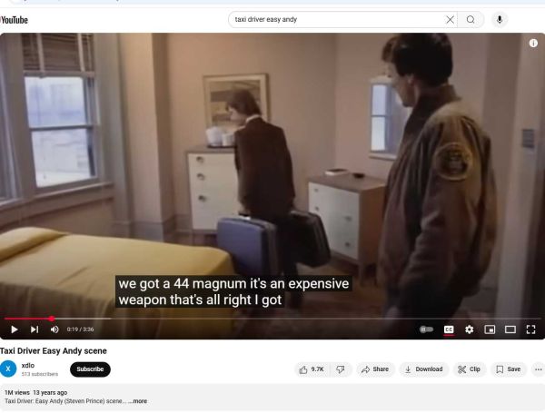 From there, I looked up videos from de Niro's movie Taxi Driver, directed by Martin Scorcese and released just two years after Godfather II. The non-Italian speed-freak Travis Bickel just stunned viewers. In this video, Travis meets "Easy Andy", a black-market professional. He sells firearms to Travis, then offers him a Cadillac, recreational drugs. Easy Andy has it all.
