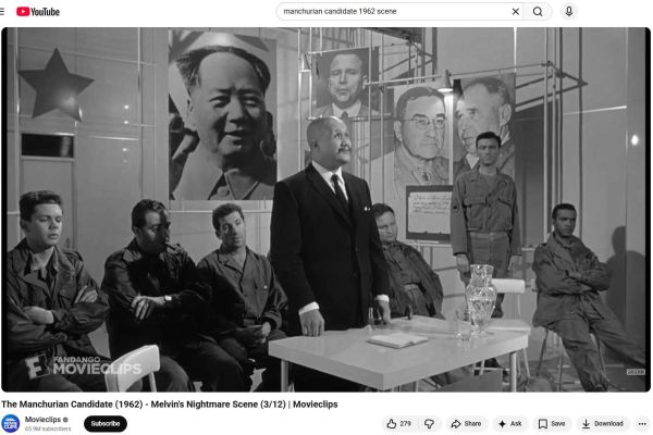 This post began when I was browsing through the The Manchurian Candidate for the fifteenth time—the novel, not the movies—published by Richard Condon in 1959. The novel starts with the abduction and brainwashing of an American platoon in Korea. The intelligence services of China and Russia psychoanalyze the soldiers of the platoon and make a decision about one soldier named Raymond Shaw, a marksman, whom they need to train as an assassin.