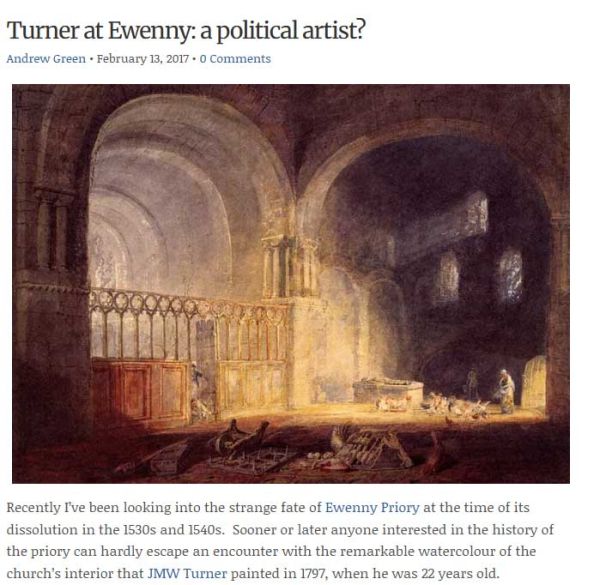 The 18th century painter J. M. W. Turner thought enough of the ruins to paint them. He painted the ruins of Ewenny Priory in South Wales and Kirkstall Abbey in Yorkshire—chickens in Ewenny and cattle in Kirkstall, a terrible comedown for such noble Norman buildings. Turner had to travel the length of the British Isles to do this—a distance of 170 miles! Quite a feat, in those days.