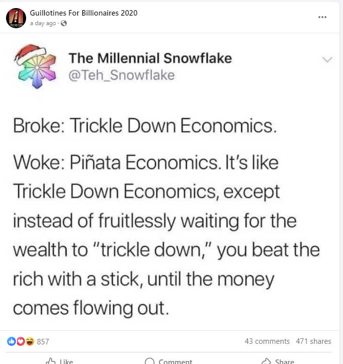 - The wealthy hoarding money, while they starve their workers and corrupt the government;