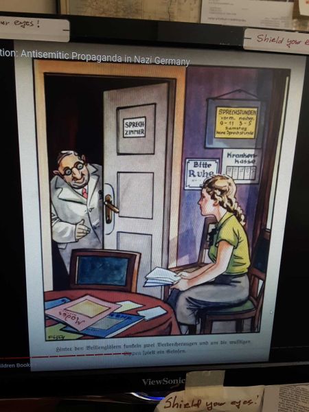 So, not surprisingly, the Nazis targeted the Jews for their cruelty to animals. They showed Jewish bankers evicting poor farmers—young mothers with small children. When Americans think about the Holocaust and Nazi racism in general, they must realize that the Nazis won half the battle for the hearts of the German people with skilllful media and provocative art-work.