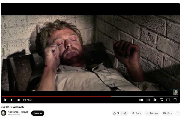 But the brainwashers cannot break him. While they stand over him threateningly, he lets them know he has a trick up his sleeve and taunts them: "I know what you're doing, because I've read the file."