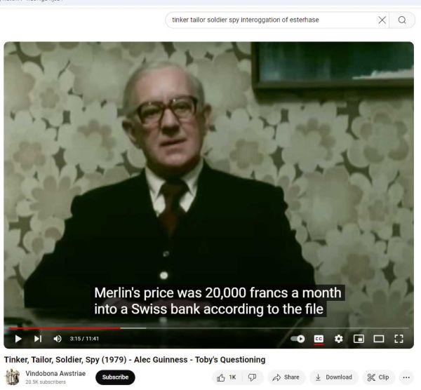 In 1980, PBS, the Public Broadcasting System broadcast the seven-part television-drama Tinker, Tailor, Soldier, Spy, based on the novel of the same name by the late John le Carré, and starring an all-British cast led by the late, great Alec Guinness and co-starring some of Britain's greatest acting talents of the day, like Ian Richardson, Michael Aldridge, and Ian Bannen.