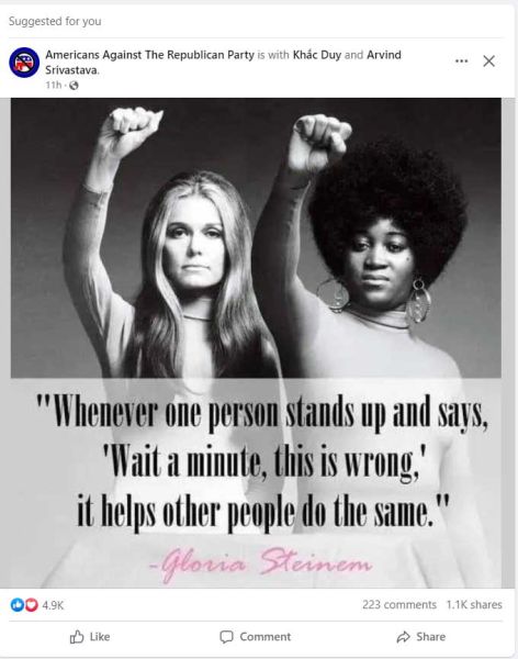The Left portrays the Republicans as a racist, homophobic clique of rich, right-wing reactionaries who use the Fox News Channel and talk-radio to spew hate-filled falsehoods about minorities and gays. If my Republican readers will access Facebook, they should take note of this anti-Republican hate-speech. Dissemination of "sponsored" or "suggested" posts on Facebook represents a sizable expense for someone. Since the bloggers harbor so much hatred for the GOP, the Party should find out who finances them. The sophisticated graphics that the bloggers use, by themselves, would cost a bundle.